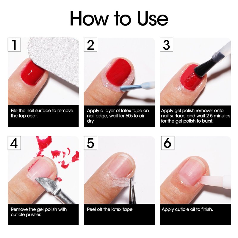 - 【Gel Nail Polish Remover Kit】: Gellen gel polish remover kit include a gel nail polish remover, a liquid peel off latex tape, cuticle oil pen, cuticle pusher, nail file and gel polish remover wipes. Easy and quick nail polish removal at home!