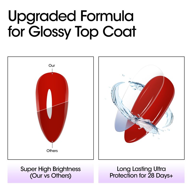 - 【Long Lasting for 28+ Days】: With advanced formula, our Strong Base Coat prevents from peeling off and Glossy Top Coat provides ultra protection for your nails, avoids scratches or stains, and keeps a lasting gloss effect over 28 days under proper application. (LED/UV lamp needed)