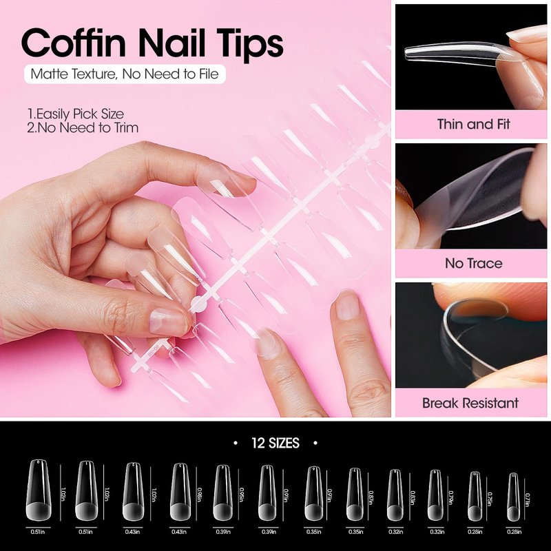 - 【Premium Quality Nail Tips】: With an inner matte texture for better friction, these PMMA nail tips are breathable, lightweight, and durable, giving a natural look. The set includes 204 artificial nail tips in 12 sizes (numbered 0-11), allowing easy selection for each finger. Pre-shaped and break-resistant, they offer quick, long-lasting results with our specially formulated Nail Gel, lasting for 28+ days.