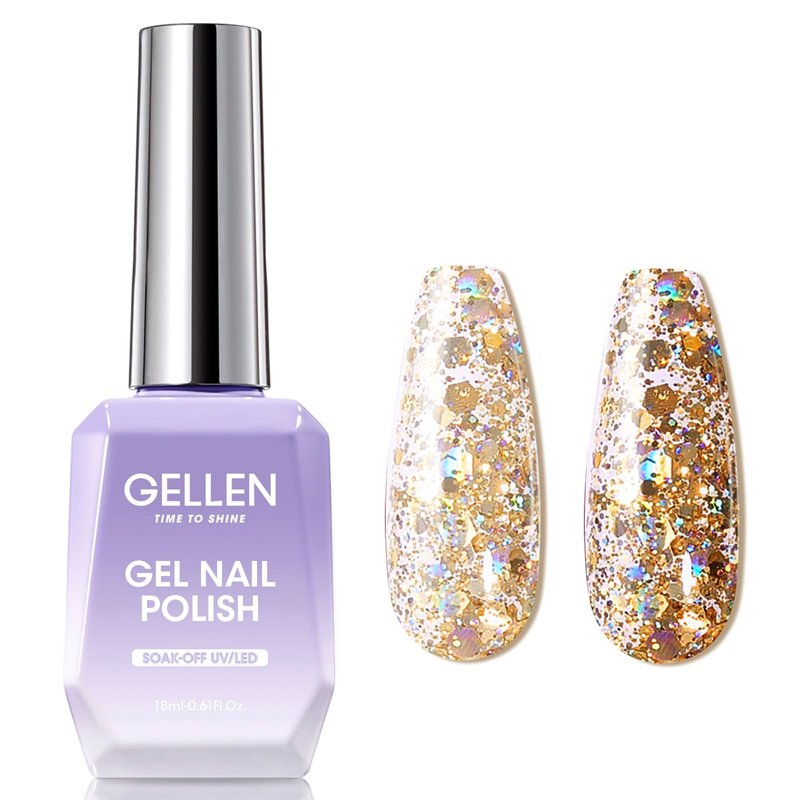 - Gellen 18ml Gold Glitter Gel Polish: Stand out with our reflective glitter gold color, loved by many. Unlike smaller 5ml or 8ml options, our gel polish comes in a generous 18ml capacity, which is more durable enough to be reused more times for doing more nail art design.