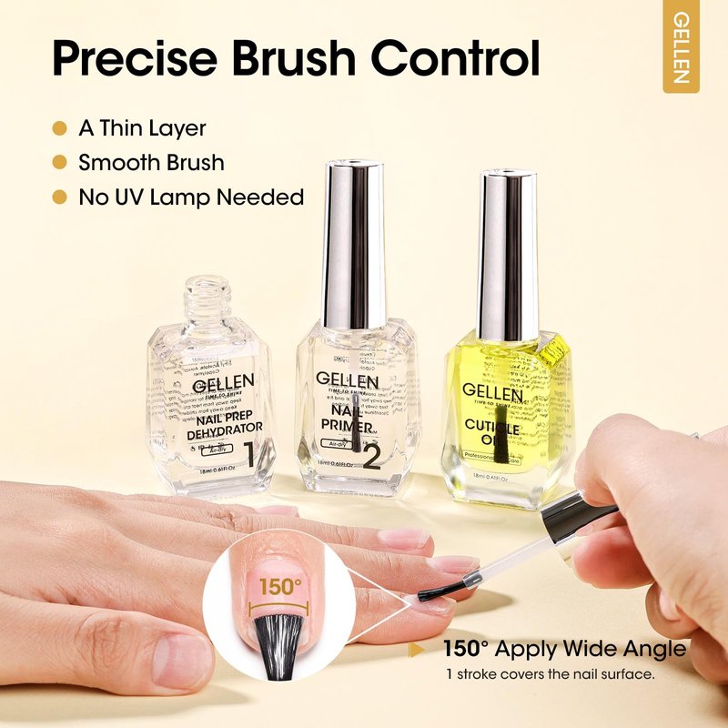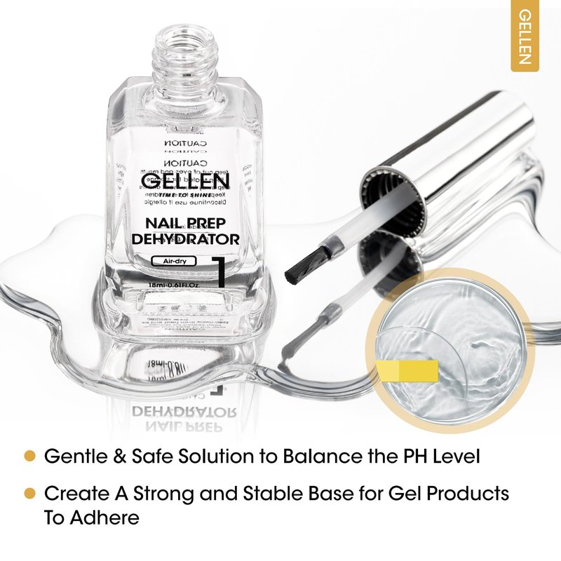 - Prevent Lifting Chipping: The first step in all professional manicures is preparing the nails and applying a foundation. The nail dehydrator removes dirt, and oil and cleans the nail surface to help bond natural nails and mani products. The gel polish primer strengthens the adhesion between your natural nails and the nail gel, enhances adhesion, and prevents nail gel from lifting, breaking, or peeling off, resulting in a shinier and longer-lasting manicure