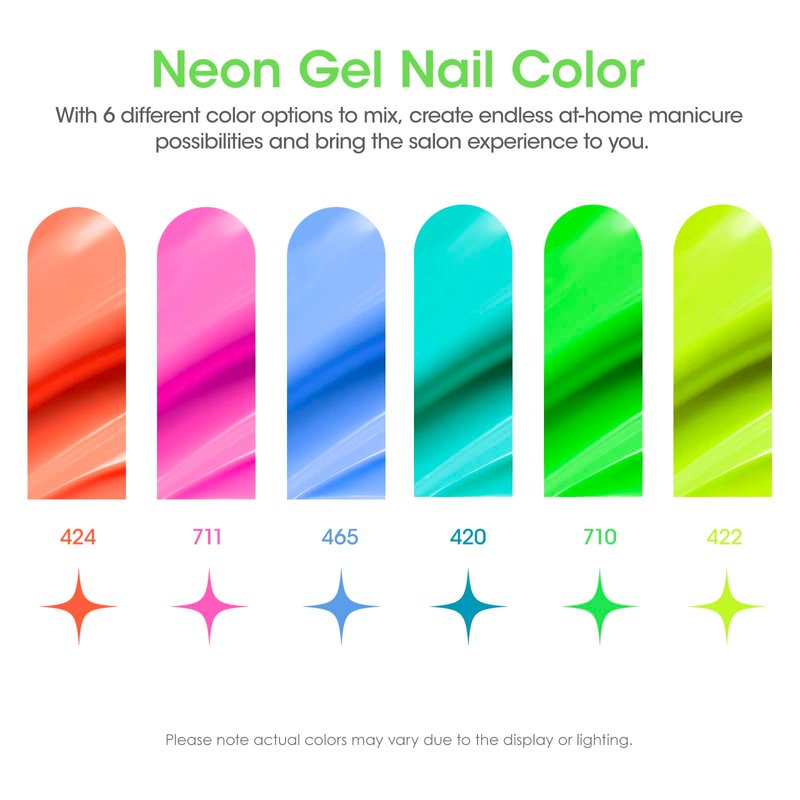 - 【Gellen UV Gel Nail Polish Kit】: This Gellen classic starter nail polish set includes 6 * 10 ml gel polish + 6 transparent color cards. Elevate your nail game with our 6pcs Gel Nail Polish set featuring a captivating range of neon shades. Experience the perfect blend of bold and feminine colors to complement any occasion or outfit.