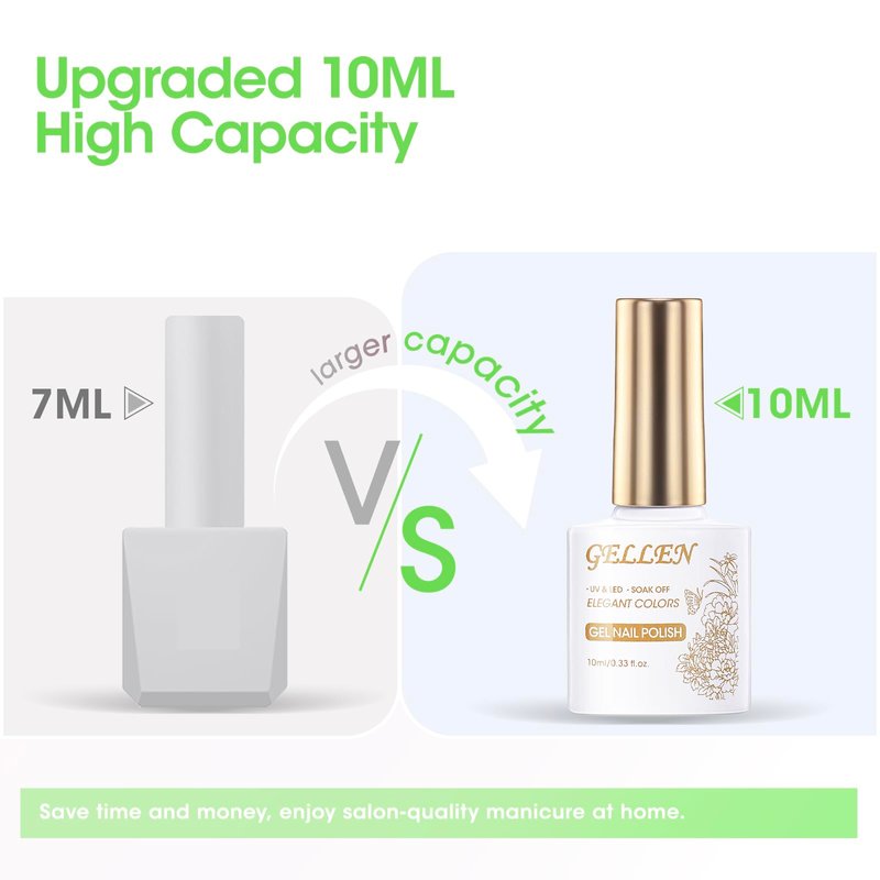 - 【Premium & Strong Fomular, Long-lasting for 21+ Days】: Gellen spring gel polish is long-lasting for 21+ days since these gel nail polish are carefully crafted to provide a high saturation and high gloss finish, ensuring that your nails keep vibrant & glossy effect during everyday activities.