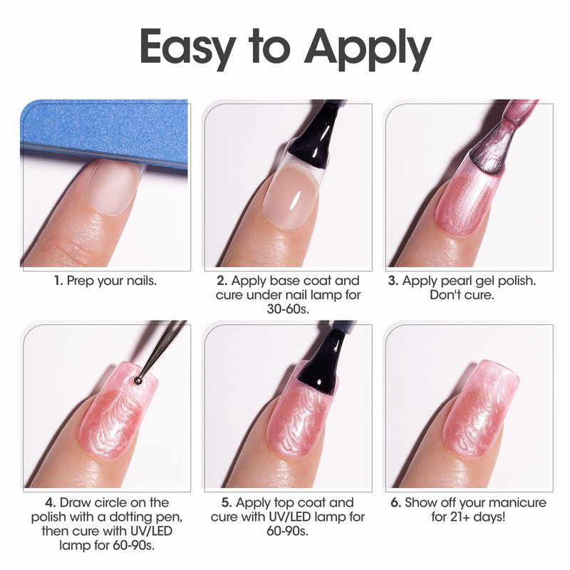 - 【Warm Tips】: This pearl gel nail polish needs to be cured under LED/UV lamp. May cause an allergic reaction by skin contact. Avoid contact with eyes, mouth, and skin. If there is any problem encountered, please feel free to contact us, we will actively solve the problem for you