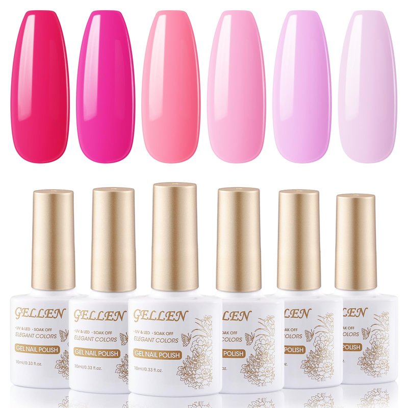 - 🌺 Delicate Gel Nail Polish Kit: Gellen selects 6 pastel and hot pinks featuring beautiful and vibrant shades that are perfect for the warm, sunny days. These shades are perfect for creating fun and playful nail art designs or for a simple yet stylish manicure. The color sticks we provide can help you better distinguish colors and improve the experience of making nails.