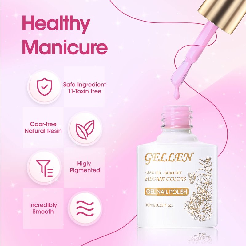 - 🌺 Eco-Friendly & Non-Toxic: Our Gel Nail Polish Set is crafted using only eco-friendly and non-toxic ingredients, making it both healthy and low in odor with no harsh chemicals or adhesives.