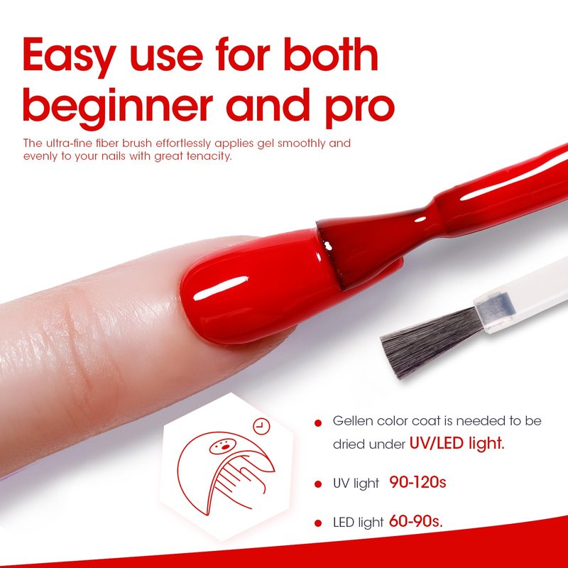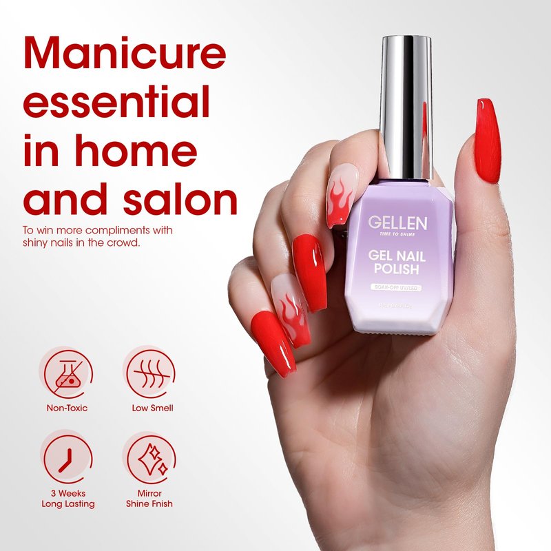 - Healthy & Environmentally Friendly: Gellen gel nail polish red is crafted from natural resin, making it harmless, non-toxic, and eco-friendly. It features a high quality and low smell, offering you a pleasant and safe nail experience. Fit to use in a salon or DIY at home.