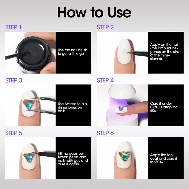 - 【Stable&Viscous Nail Gems Glue Gel】: Compare with other nail rhinestone glue, our upgraded healthy gel formula is more stable rather than slipping or messing when you apply different rhinestones, helping you make durable manicure. The viscous gel can provide you for better nail experience. The LED light is needed.