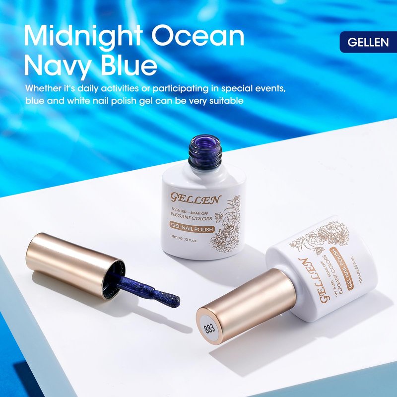 - 2 Colors Summer Blue White Gel Nail Polish Set: 1*10ml/0.33oz blue gel polish and 1*10ml/0.33oz white gel polish. We put two popular colors together and refer to the natural colors of the summer sea, this is a fashionable and modern nail art nail polish set. It comes with shimmer blue and white gel nail polish to DIY at home for summer and 4th of july gel nail polish kit.