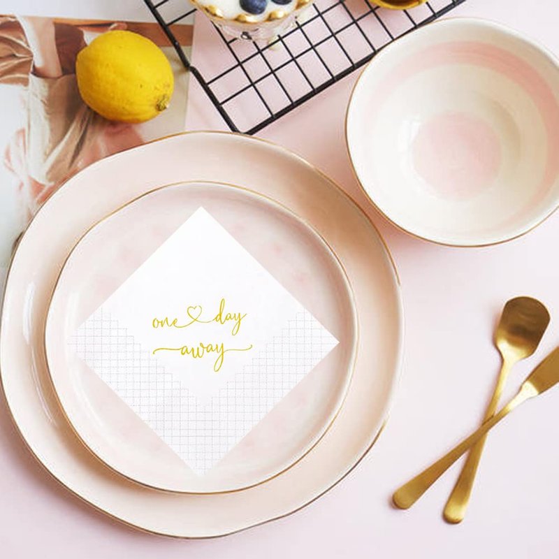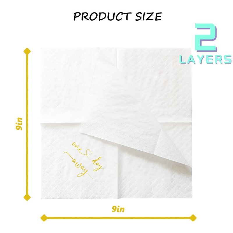 - ✿Gold foiled One Day Away Rehearsal Dinner napkin is a cute addition to your celebrations. Perfect for wedding or any celebrations.