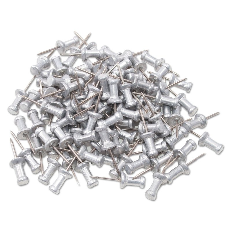Quality aluminum head with a strong steel pin. The smooth extended head and sharp point allow these push pins to be inserted into the toughest surfaces. Easy to remove without harming fingers.