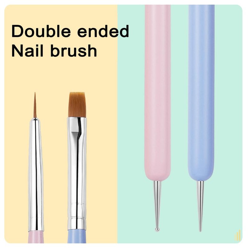 - 【Professional Nail Art Brushes】Come with 6 different nail art brushes, including 1 round flat brush, 1 square flat brush, 1 inclined brush, 1 painting brush and 2 double ended nail brushes. Line painting brushes (6mm/ 10mm) , dotting tools (1mm/ 2mm).