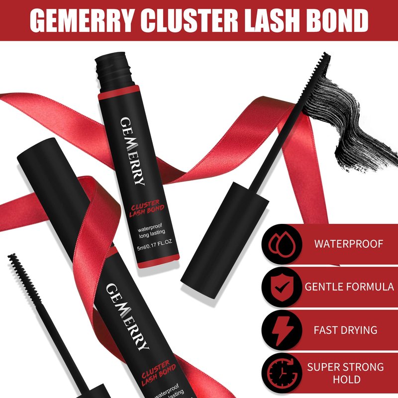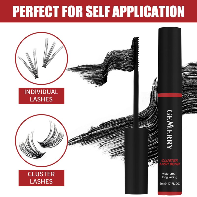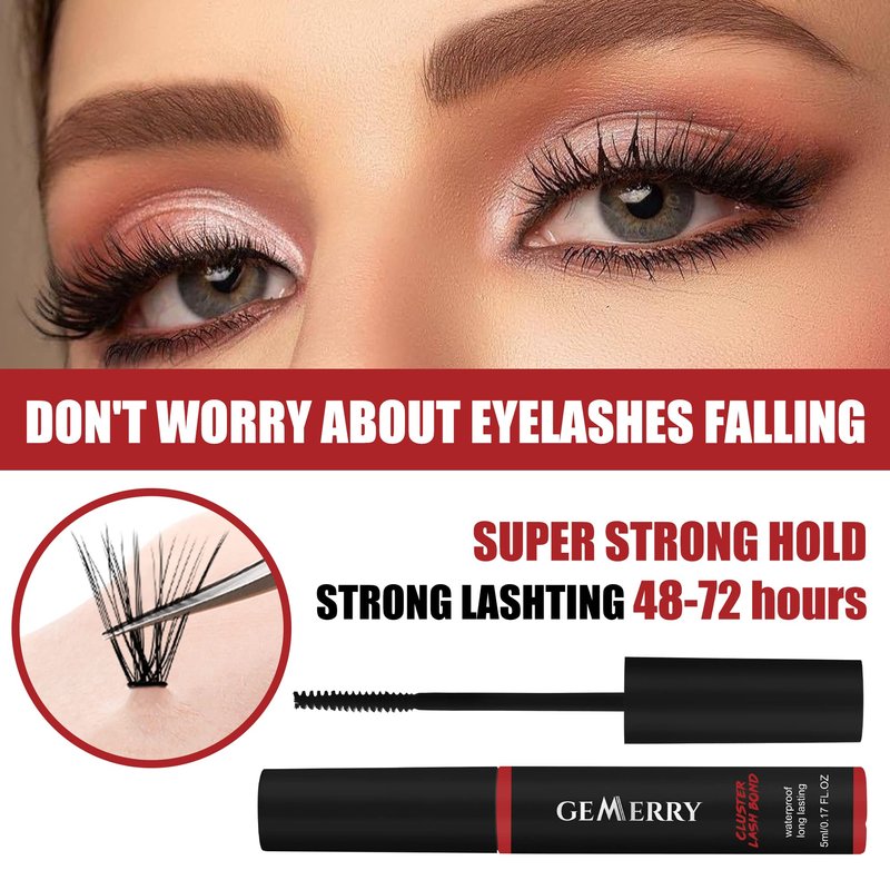 GEMERRY Lash Bond Long Retention Cluster Lash Glue Super Strong Hold Black Lash Glue for Sensitive Eyes Waterproof Individual Lash Glue for Lash Clusters