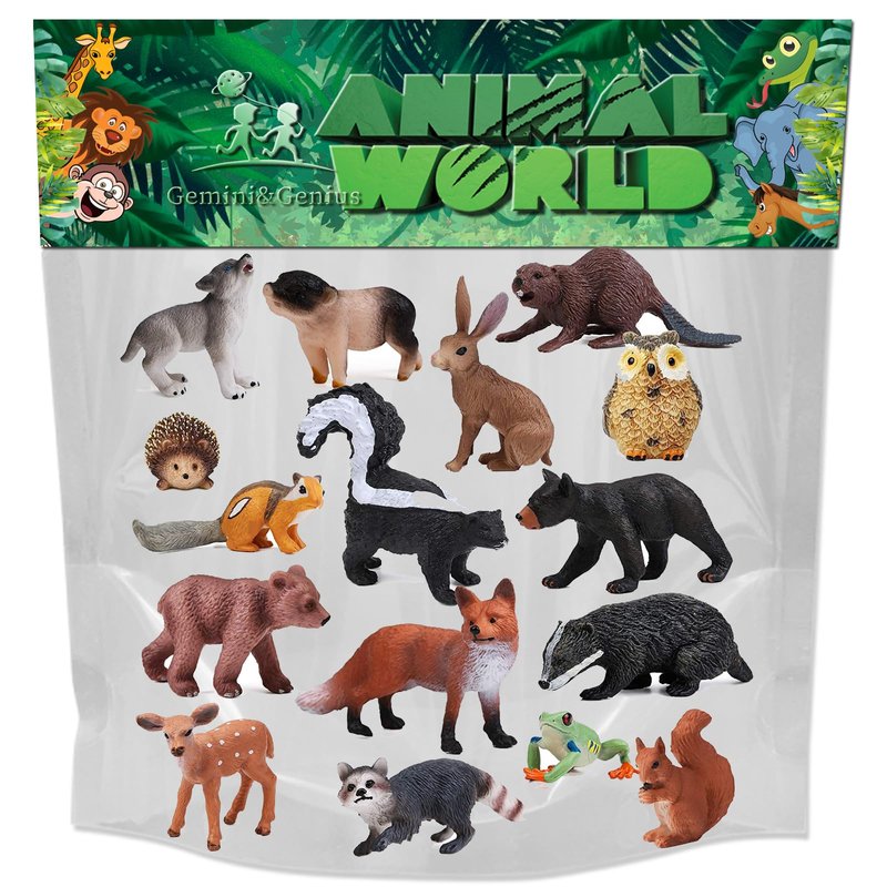 Gemini&Genius 16PCS Woodland Animal Baby Toys, Soild Plastic Forest Animals Educational Toy Figures, Cake Toppers Cupcake Toppers and Gifts for Kids