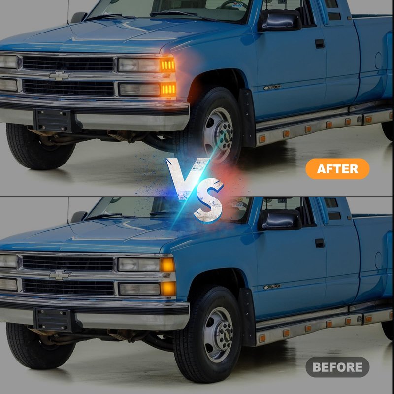 Gempro Sequential Amber LED Corner Side Marker Turn Signal Lights for Chevy C/K 1500 2500 3500 1994-1998 C10 Pickup Truck Silverado Suburban Tahoe Front Grill Lights, 4PCS