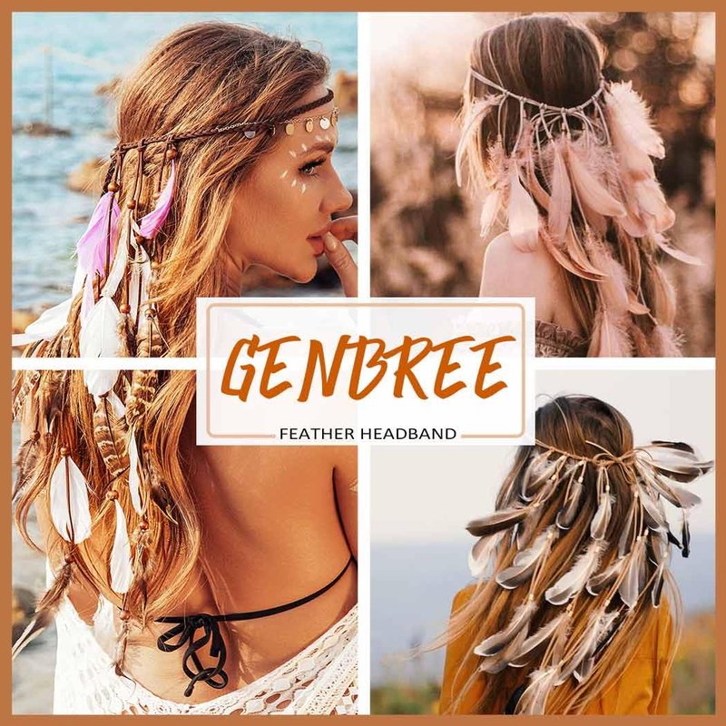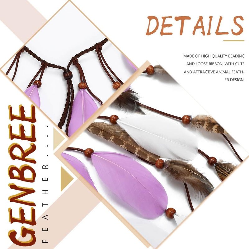 GENBREE Boho Feather Headbands Gypsy Headpiece Bohemian Hippie Headband Indian Hair Band Long Feather Hair Accessories for Women and Girls