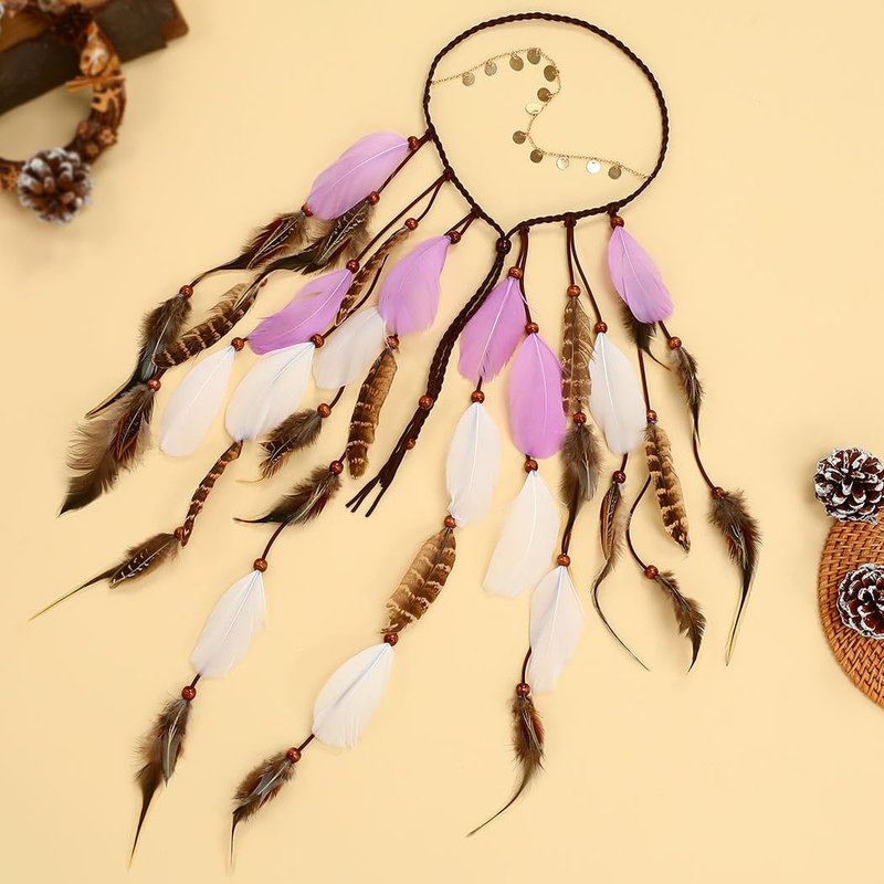 - Bohemian feather headbands are made of great white feathers and purple feathers, wooden beads and braided rope,exquisite with soft materials and hand-crafted
