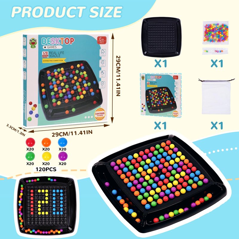 - ✅【High-quality Materials】The intellectual chessboard dual is made of high-quality ABS materials and has a colorful paper box packaging. It has a beautiful appearance and contains 120 colored balls, a storage bag, and is also easy to store.