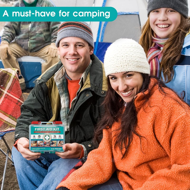 110 Pieces Small First Aid Kit - HardCase First Aid Box - Contains Premium Medical Supplies for Travel, Home, Office, Vehicle, Camping, Workplace & Outdoor