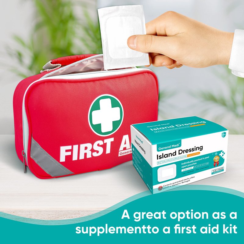 General Medi Sterile Island Dressing Bordered Gauze – 100 Count, 2.4" x 2.75" Gauze Pads, Wound Care Pad with Adhesive Border - Sterile, Soft & Highly Absorbent Medical Grade Dressing Pad