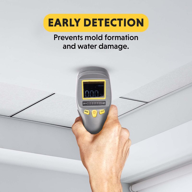 - DEEP DETECTION: Early prevention is vital when stopping mold formation. Check and test suspicious leak stains to determine if the area is wet or has already dried. It includes an out-of-range alarm and a low 9V battery alert.