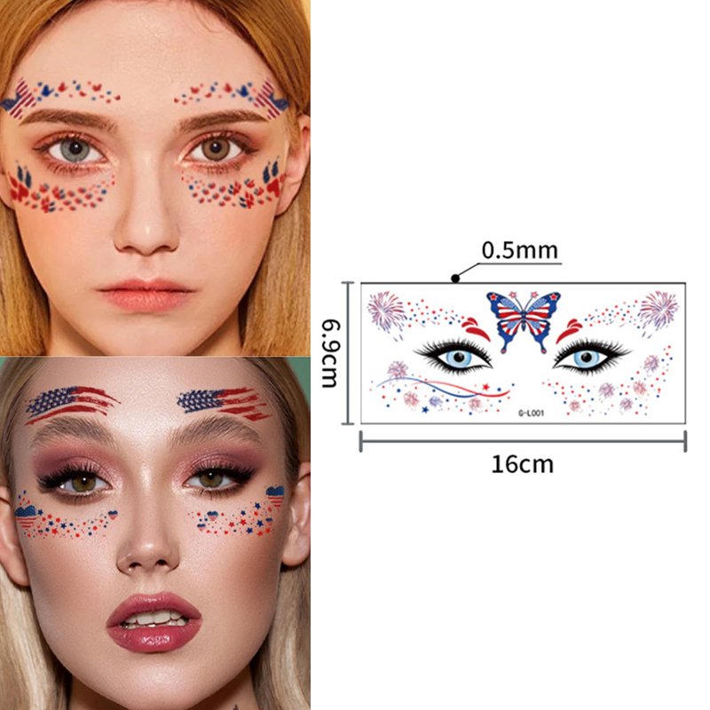 July 4th Temporary Tattoo Stickers Red White Blue American Flag Star Heart Patriotic Party Memorial Day Decorative Face Eyes Body Art Makeup supplies