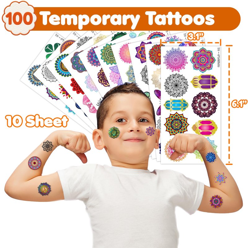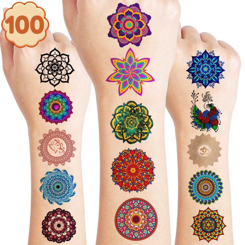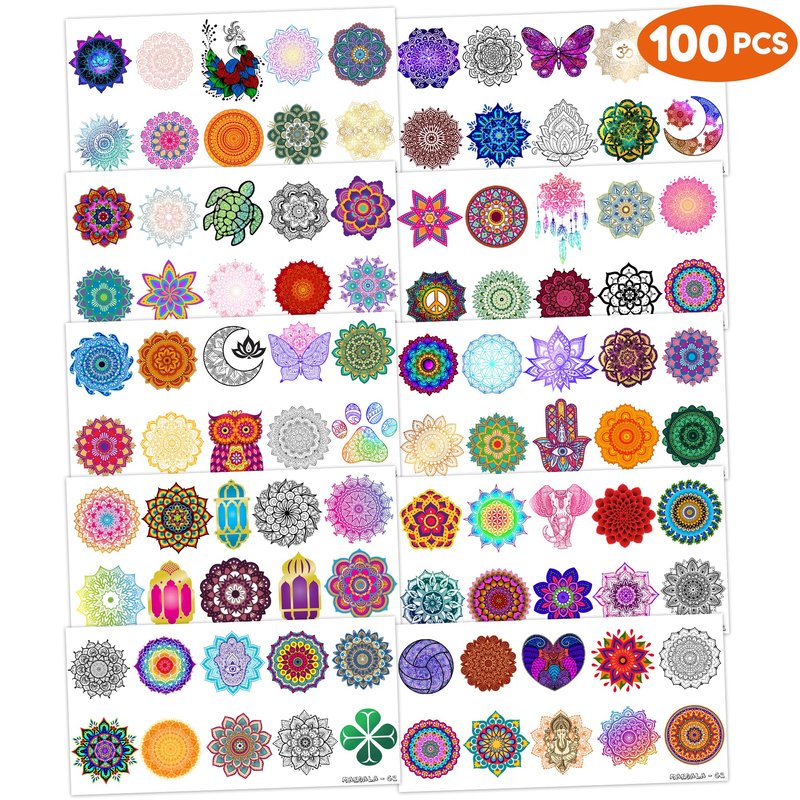 - ☸️[STUNNING MANDALA TEMPORARY TATTOOS]: Elevate your body art with our Mandala Temporary Tattoo collection. Each set includes 10 sheets featuring a total of 100 mesmerizing designs. Crafted with intricate detail, these tattoos are a must-have for Mandala art enthusiasts. Sized at 6.1 * 3.1 inches per sheet, they're perfect for all ages to adorn clothing, accessories, or to share as thoughtful gifts with fellow Mandala admirers.