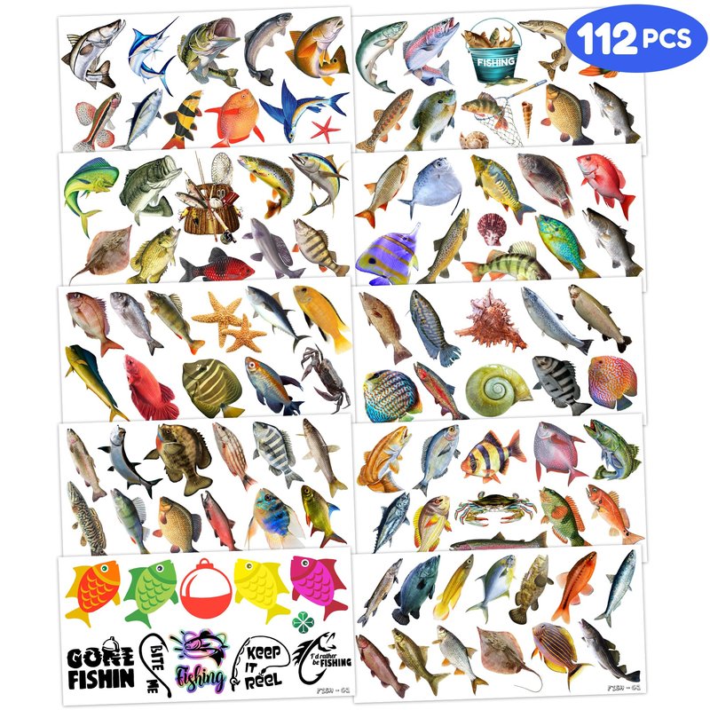 - 🌊 [VIBRANT TATTOOS FOR FISH ENTHUSIASTS]: Fish Temporary Tattoos stickers come in a set of 10 sheets, showcasing a total of 110 exquisite and charming designs. A must-have for fish lovers of all ages, each sheet measures 6.1 * 3.1 inches, providing a perfect canvas for proudly displaying your affection for marine life on clothing, accessories, or as a thoughtful gift for fellow fish enthusiasts.