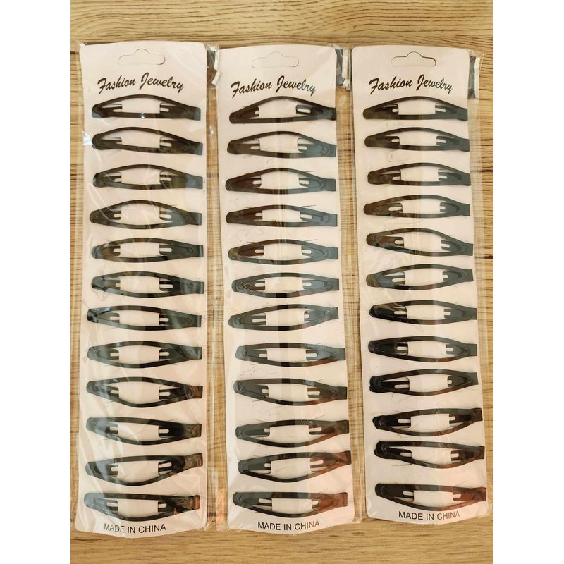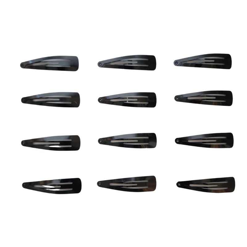 12 Pack Metal Snap Clips, all Black Color. Size- Hair Clip measure 2.5'' in Length (6 cm) and 0.5'' in width Basic simple design clips hold hair tight no slip off, won't make hair tangle. Smooth surface - coated craft process, easy attach to hair.