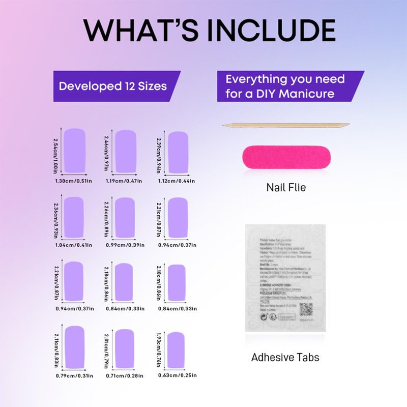 - Package Contains: You will get 24 pieces black french tip false nails in 12 sizes,1 piece nail file, 1 piece nail double-side stickers, 1pcs wooden stick for removing nails tips. Unique fashion design, make you more sweet and charming.