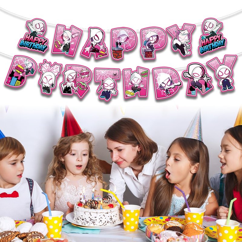 - The Spid Birthday Party Supplies pack set coming include cute banner 1pcs,high quality 24pcs cupcake stick,,1 cake topper,1 Blackdrop,15 Balloons
