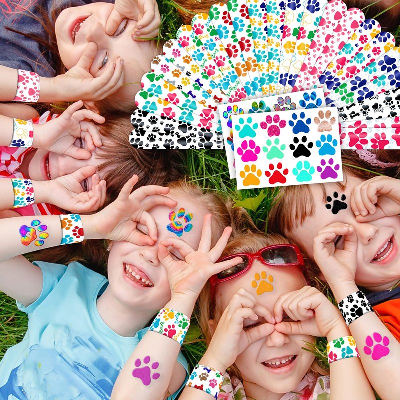- ⚽【PERFECT PAW PRINT THEMED GIFT FOR ALL】: Our PAW PRINT Slap Bracelets and Tattoos make an ideal present for individuals of all ages, both kids and adults. They are fitting for any event, providing an inexpensive and delightful choice. Be it school gatherings, birthdays, or stocking fillers, this PAW PRINT-themed collection brings a fashionable and nostalgic element to anyone's accessory repertoire, evoking happiness and cherished recollections. WARNING: CHOKING HAZARD - Small Parts. Not suitable for children under 3 years