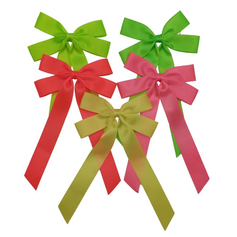 Generic 5 PCS HAIR RIBBON SATIN PONYTAIL HOLDER HAIR ACCESSORIES ALLIGATOR CLIPS HAIR BOW FOR ALL AGES (Neon)