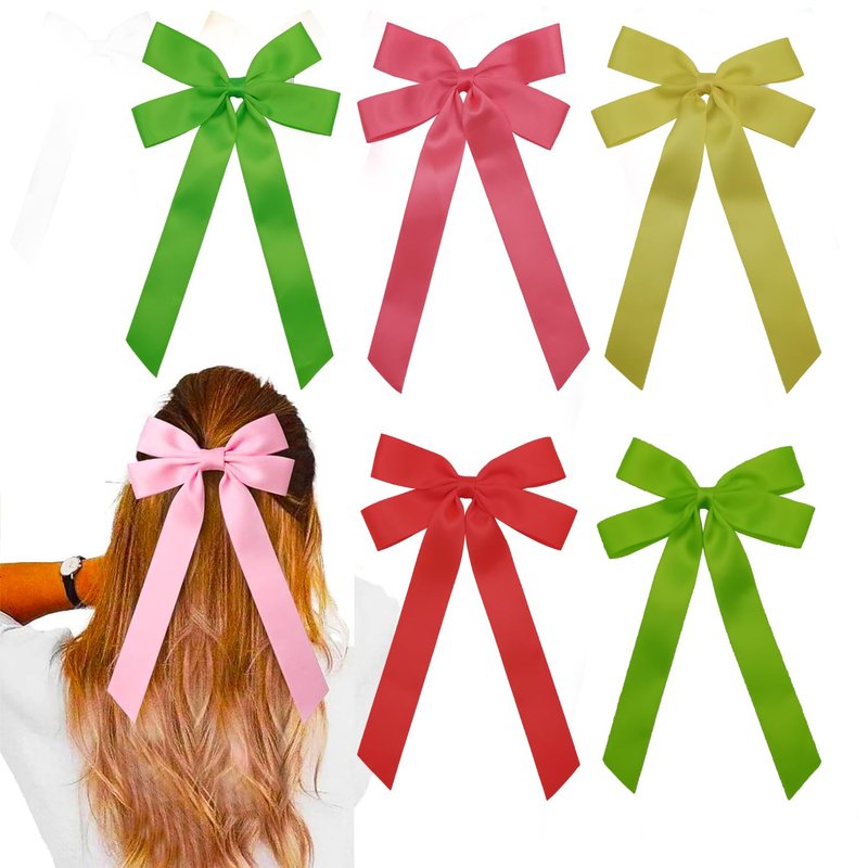 - Product Type: Large Satin Hair Bows Hair Ribbons for Women Material: Satin Ribbon Size: Large Technics: Handmade Color: 5 different color for your choose Packing: 5 pcs/bag