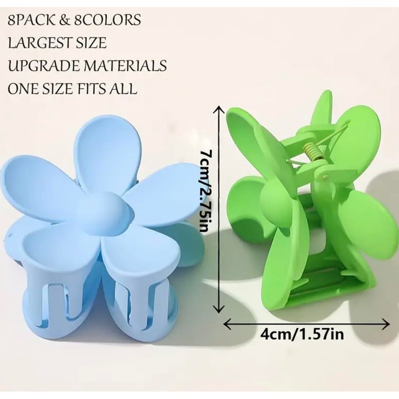 The 8Pcs Matte Flower Hair Clips set brings a burst of summer fun to your hair accessory collection. These plastic jaw clips are designed for women and feature a charming flower shape. Each clip comes in beautiful, candy-colored hues, perfect for adding a playful and vibrant touch to your look. The matte finish gives these clips a modern and stylish appeal. Whether you’re dressing up for a special occasion or adding a pop of color to your everyday style, these flower hair clips offer both beauty and functionality. The sturdy design ensures they hold securely, making them ideal for all hair types.