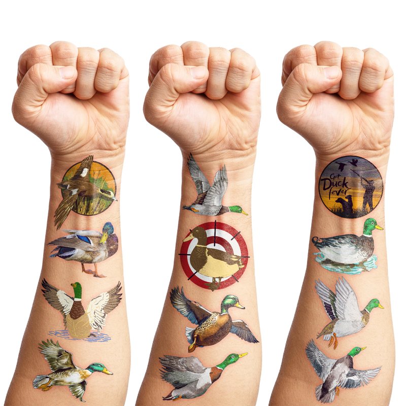 - 🦆UNIQUE DESIGNS: MALLARD DUCK tattoos in various attitudes such as flying, ready to fly, swimming, standing, etc. The realistic cartoon design will attract not only children but also adults.