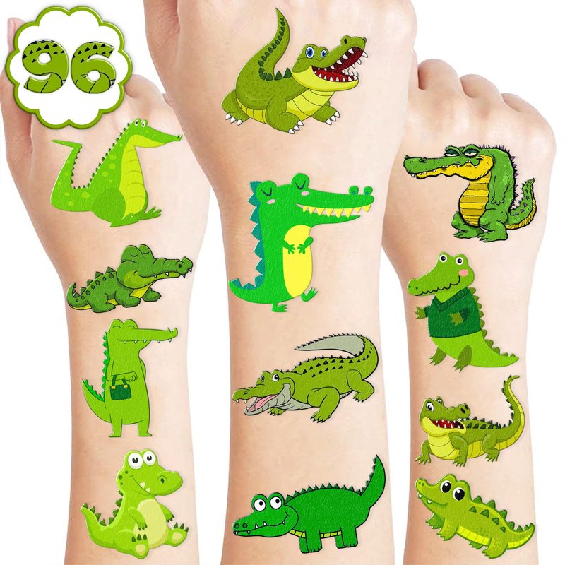 Generic Alligator Temporary Tattoos Crocodile Birthday Party Supplies Favors Decorations Super Cute 96PCS Fake Tattoos Stickers for Boys Girls School Classroom Rewards Gifts Ideal