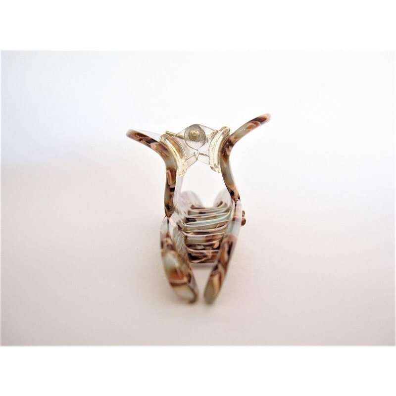 This hair claw has a pretty brown and blue/gray marbled color. Clip measures 3 1/2 inches long. This is great for finer hair.