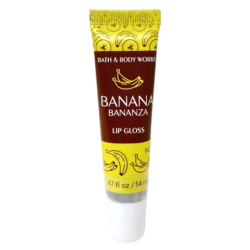 Bath and Body Work Banana Bananza Lip Gloss. SIZE: .47 fl oz / 14 mL. What it does: keeps your lips deliciously nourished. Why you'll love it: it tastes like a tropical trip for the senses.