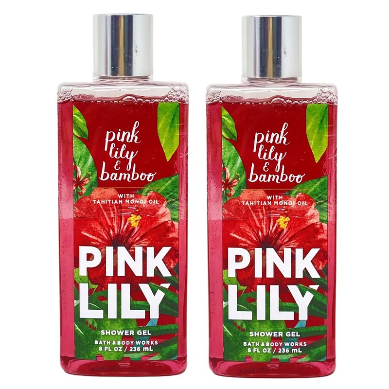 Bath and Body Work PINK LILY & BAMBOO Shower Gel Bundle. INCLUDES: 2 Shower Gels (8 fl oz / 236 mL each). What it smells like: a refreshing yet warm and woodsy bouquet from the tropics. Fragrance notes: wild lily petals, bamboo leaf, pink ginger, fresh fig and sauna wood. What it does: leaves your skin feeling fresh, clean and beautifully fragranced.