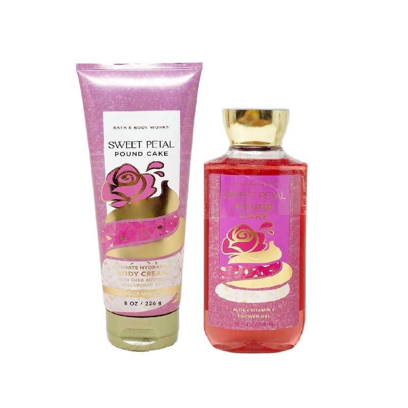 Generic Bath and Body Work Sweet Petal Pound Cake - Duo Gift Set - Body Cream and Shower Gel
