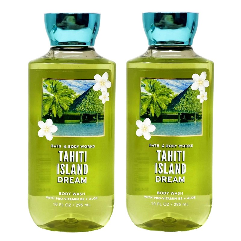 Bath and Body Work TAHITI ISLAND DREAM Body Wash Bundle. INCLUDES: 2 Body Washes (10 fl oz / 295 mL each). What it smells like: being whisked away on a surprise island vacay. Fragrance notes: fresh coconut water, sparkling mandarin, kiwi blossom, lush frangipani and Tahitian vanilla musk. What it does: gently cleanses your skin with a rich, bubbly lather.