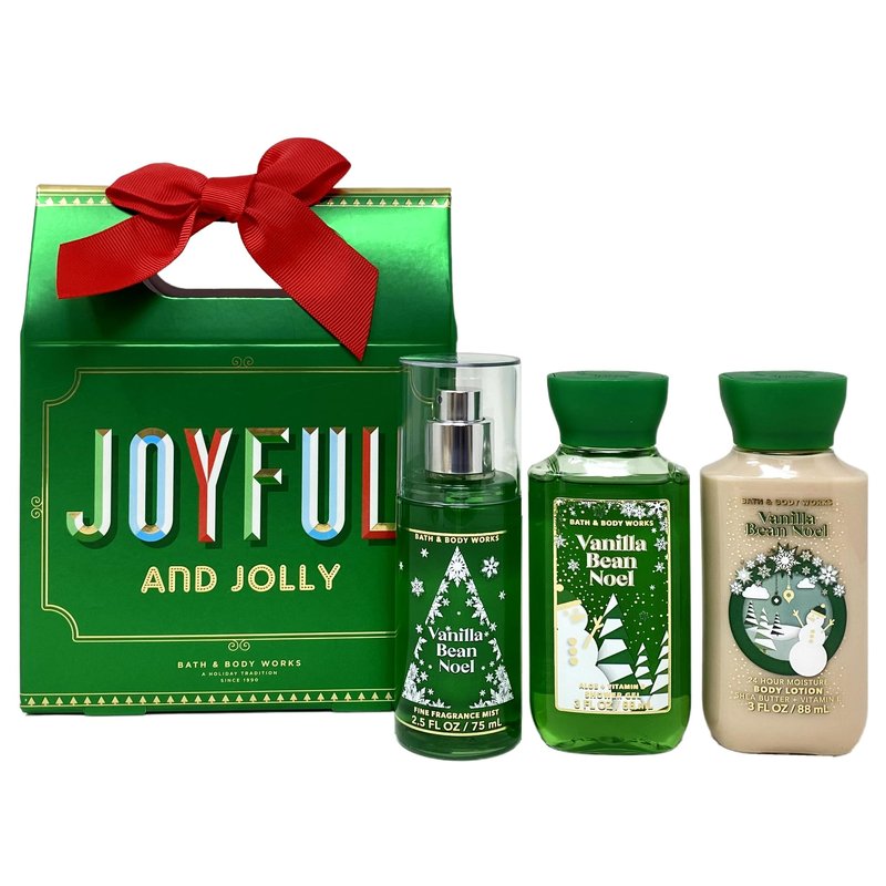 - Bath and Body Work VANILLA BEAN NOEL Joyful And Jolly Festive Travel Size Trio Gift Box Set.