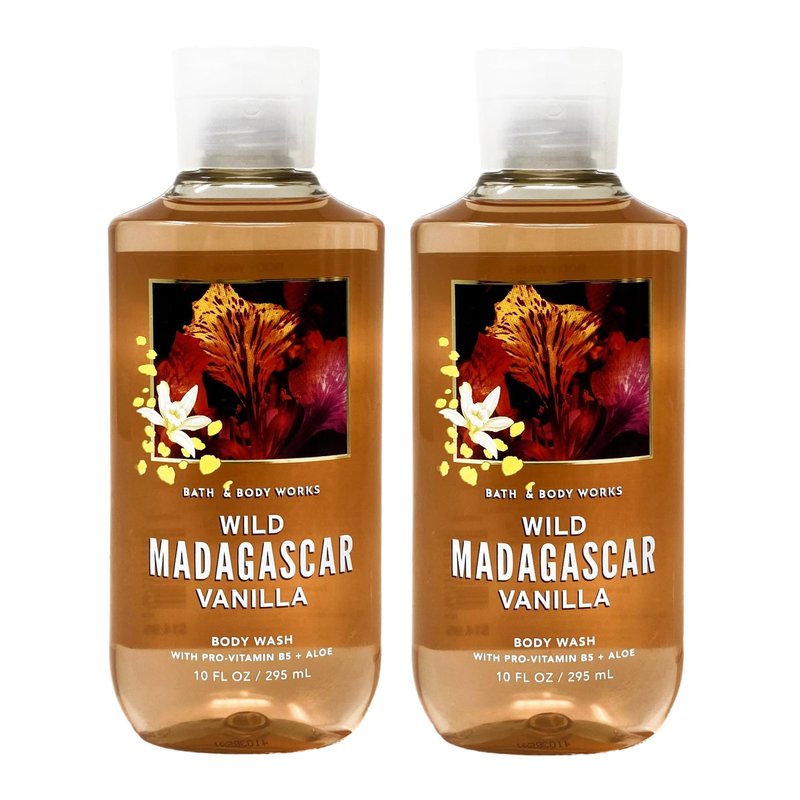 Bath and Body Work WILD MADAGASCAR VANILLA Body Wash Bundle. INCLUDES: 2 Body Washes (10 fl oz / 295 mL each). What it smells like: the most intriguing, exhilarating vanilla ever. Fragrance notes: wild Madagascar accord, African pear and wild jasmine. What it does: gently cleanses your skin with a rich, bubbly lather.