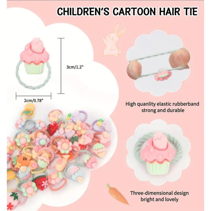 - Adorable & Colorful: Our lovely hair ties for girls come in a variety of vibrant colors and cute designs, adding a touch of fun. Value Pack: There are 20 different kinds of cartoon flowers elastic hair ties in the package. Product Size: The diameter of Hair rope aprrox 1 inch, suitable for children. Suitable for small braids, not suitable for adult ponytails with too much hair. High-Quality & Durable: Made with premium materials, our hair ties are designed to withstand daily use and retain their elasticity, ensuring long-lasting performance and value for money.
