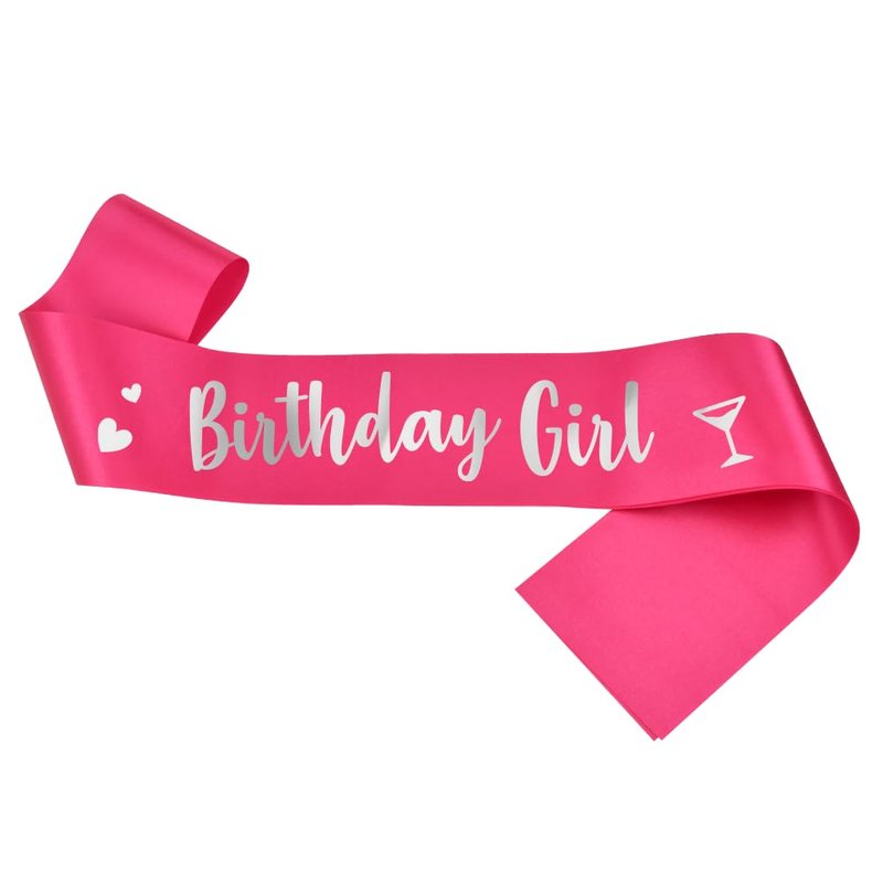 Generic Birthday Girl Sash, Birthday Sash for Girls, Birthday Girl Sash for Women, Birthday Gifts for Women, Hot Pink and Silver Birthday Party Decorations and Supplies
