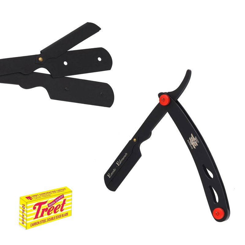 Black and Red Cool Engraved Shaving Barber and Salon Straight Edge Razor - Easy Shaving - Lightweight Folding Razor