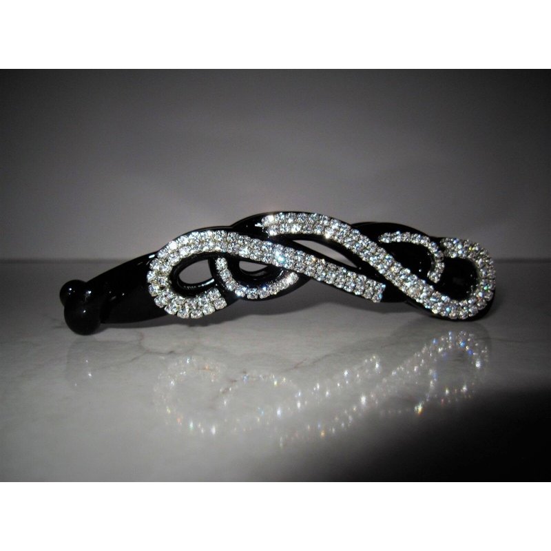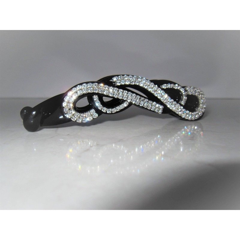 Generic Black or brown sparkly banana hair claw clip with crystals rhinestones (Primary color: Black), 1 Count (Pack of 1)