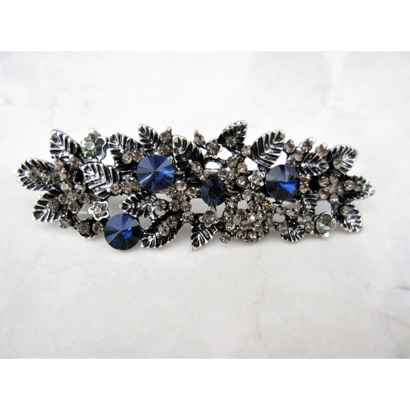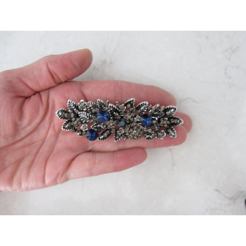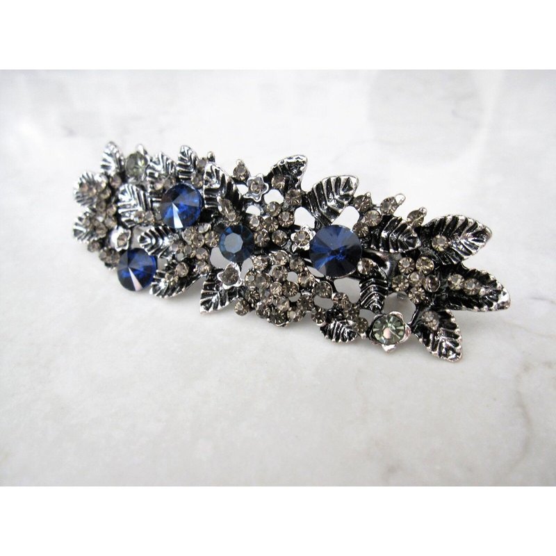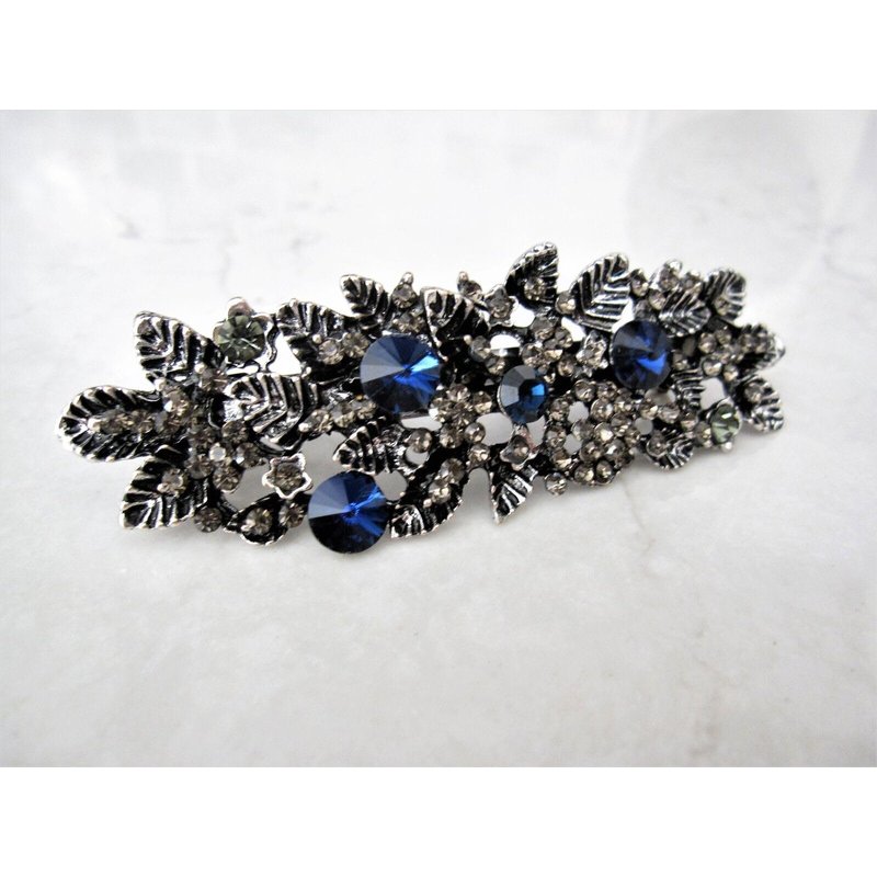 Beautiful hair clip with blue and smoke gray crystals for that special occasion.