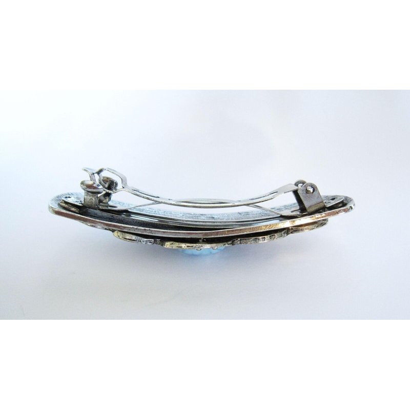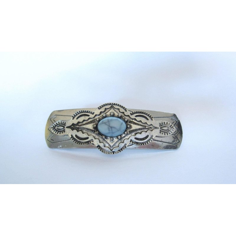 Generic Blue stone silver distressed metal native tribal hair clip barrette